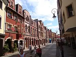 Segundo as estimativas, em outubro de 1945 havia 4 456 poloneses e 14 600 alemães na cidade. Em dezembro, 5 413 e 13 580, respectivamente. A população local de cassúbios era contada às vezes como alemães, às vezes como poloneses, devido à falta de conhecimento literário do polonês e de seus nomes alemães. Outro problema foram as pessoas que assinaram a Volksliste. Nesse caso, ficou estabelecido que as pessoas que assinaram a primeira lista eram reconhecidas incondicionalmente como alemães, as pessoas da segunda lista apenas em situações excepcionais, enquanto as pessoas das listas III e IV recebiam temporariamente a cidadania polonesa sem maiores problemas.[17] A população reconhecida como alemã teve que deixar a cidade e ir para a Alemanha, a menos que sua presença fosse necessária para o início das operações de alguma fábrica.[18]