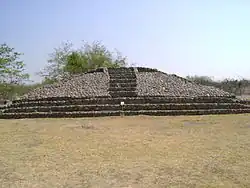 Edifício piramidal quadrado que domina o conjunto urbanístico, com uma base de 26 por 31 m. Constitui uma amostra da arquitetura monumental pré-hispânica. A estrutura original contava de vários corpos superpostos, mas atualmente apenas se conservam três. Sobre o imponente embasamento elevado sobre o restante das edificações encontrava-se um templo em onde se rendia culto a uma importante deidade que representava as forças míticas dos fenômenos naturais. No interior encontra-se outra construção correspondente a uma época mais antiga. Observam-se modificações tardias na parte esquerda do edifício.
