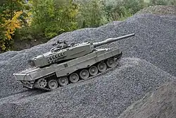 O peso de um veículo sobre lagartas é transferido para o segmento inferior de cada lagarta, através de várias rodas ou de conjuntos de rodas (bogies). As rodas são tipicamente montadas em alguma forma de suspensão para amortecerem o deslocamento sobre terreno irregular. O projeto da suspensão constitui uma grande área do desenvolvimento das lagartas, uma vez que os primeiros modelos praticamente não tinham suspensão. A suspensão das rodas, desenvolvida posteriormente, permitia apenas alguns centímetros de curso, através do uso de molas. Já os modernos sistemas de suspensão hidro-pneumática permitem um curso de um metro ou mais, incluindo amortecedores. A suspensão de barra de torção tornou-se no tipo de suspensão mais comum dos veículos militares de lagartas.