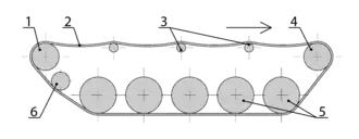 (6) Roda tensora.