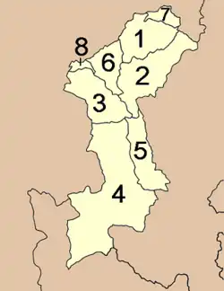 A província está subdividida em 7 distritos (amphoes) e 1 subdistrito (king amphoe ). Os distritos e o subdistrito estão por sua vez divididos em 51 comunas (tambons) e estas em 520 povoados (moobans). (muban).