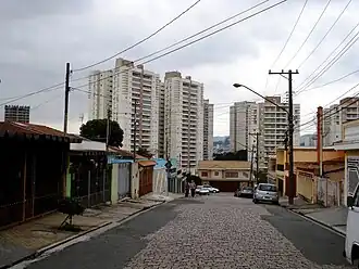 | Rua residencial e prédios residenciais do bairro. | Entrada do Santana Parque Shopping. Edifícios em construção ao fundo. | |||||