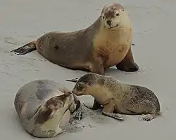 - ↑ «Recovery Plan for the Australian Sea Lion» (PDF). Minister for Sustainability, Environment, Water, Population and Communities. 2013. Consultado em 23 de junho de 2015