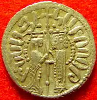Moeda representando Isabel (ou Zabel), a filha de Leão II, e Hetum I, o segundo esposo desta e fundador dos hetúmidas, a dinastia seguinte da Arménia Menor.