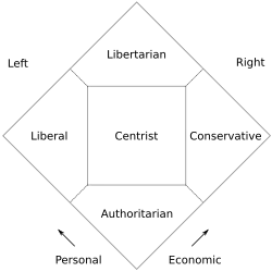 O ativista e político libertário americano David Nolan, o principal fundador do Partido Libertário dos estados unidos, desenvolveu o que hoje é conhecido como Diagrama de Nolan para substituir o tradicional espectro político de esquerda-direita. O Diagrama de Nolan tem sido usada por vários libertários americanos modernos e libertários de direita que rejeitam o espectro político tradicional por sua falta de inclusão e verem a si próprios como ao "norte do centro". Ele é usado quantificando visões libertárias típicas que apoiam tanto o livre mercado quanto as liberdades sociais e rejeitam o que eles veem como restrições à liberdade econômica e pessoal impostas pela esquerda e pela direita,[65] embora este último ponto seja criticado.[66] Outros libertários rejeitam a separação entre liberdade pessoal e econômica ou argumentam que o Diagrama de Nolan não dá peso à política externa.[67]