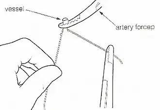 Ligadura, ou laqueação é o processo cirúrgico de amarração de uma estrutura oca, mais frequentemente vasos sanguíneos, com fios cirúrgicos. É um tipo de hemostasia ou hemostase definitiva, ou seja, interrompe definitivamente o lúmen ou "luz" da estrutura oca, que pode ser um vaso sanguíneo, mas é também utilizado em outras estruturas, como a uretra e a tuba uterina (antigamente chamada de trompa de Falópio), em que o objetivo não é necessariamente a interrupção do fluxo sanguíneo.[1] Os outros tipos de hemostasia definitiva são cauterização, sutura, obturação e tamponamento. É um procedimento utilizado no tratamento de hemorragia aguda por ataque direto ao vaso.[1]