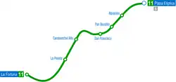 A linha 11 do metrô de Madri circula entre as estações da Plaza Elíptica e La Fortuna, para um total de 7 estações com plataformas de 115 metros, interligadas por 8,5 km de pista em túnel de bitola larga. [1][2]