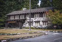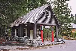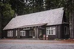 - ↑ a b c d e Harrison, Laura Soulliere (1986). «National Register of Historic Places Inventory - Nomination Form: Longmire Administration Building, Community Building and Service Station» (PDF). National Park Service. Consultado em 16 de março de 2011. Cópia arquivada (PDF) em 21 de julho de 2011