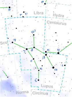 - ↑ «Lupus» (em latim). União Astronômica Internacional. Consultado em 20 de setembro de 2021
