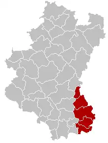 | Distrito de Arlon: | Distrito de Bastogne: | Distrito de Marche-en-Famenne: | Distrito de Neufchâteau: | Distrito de Virton: |