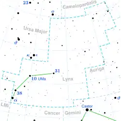 Lynx, a Lince, é uma constelação do hemisfério celestial norte. O genitivo, usado para formar nomes de estrelas, é Lyncis.