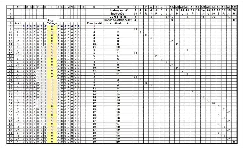 (ii) Ação da tabela: If símbolo é 0 (1) and J0 (J1) then goto xxx else goto próxima instrução na sequência