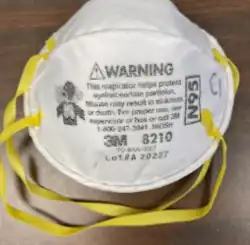 Uma máscara N95 é um respirador facial filtrante de partículas que atende à classificação de filtragem de ar N95 do Instituto Nacional de Segurança e Saúde Ocupacional dos EUA, o que significa que filtra pelo menos 95% das partículas transportadas pelo ar de 0,3 μm, enquanto não é resistente ao óleo como o P95. É o respirador facial filtrante de partículas mais comum.[45] É um exemplo de um respirador de filtro mecânico, que fornece proteção contra partículas, mas não contra gases ou vapores.[46] A máscara facial correspondente usada na União Europeia é o respirador FFP2.[47][48]