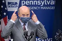 - ↑ Weissert W, Lemire J (7 de maio de 2020). «Face masks make a political statement in era of coronavirus» [Máscaras faciais tornam-se uma declaração política na era do coronavírus]. AP News. Consultado em 17 de dezembro de 2025