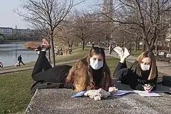 - ↑ «About 40% of parents think mask-wearing harmed their kids' school experience» [Cerca de 40% dos pais acham que o uso de máscaras prejudicou a experiência escolar de seus filhos]. Harvard University. 30 de março de 2022. Consultado em 17 de dezembro de 2025
