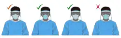 Existem outros tipos de equipamento de proteção individual (EPI), como protetores faciais e óculos médicos, que às vezes são usados em conjunto com máscaras faciais, mas não foram recomendados como substitutos.[14] Outros tipos de EPI incluem luvas, aventais, capotes, protetores de calçados e toucas.[15]