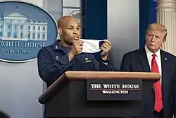 - ↑ Quinn M (12 de julho de 2020). «Surgeon general says administration 'trying to correct' earlier guidance against wearing masks» [Cirurgião-geral diz que administração está 'tentando corrigir' orientações anteriores contra o uso de máscaras]. CBS News. Consultado em 17 de dezembro de 2025