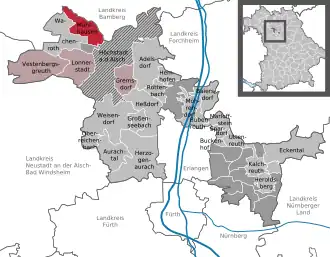 | Localização de Mühlhausen no distrito de Erlangen-Höchstadt | |