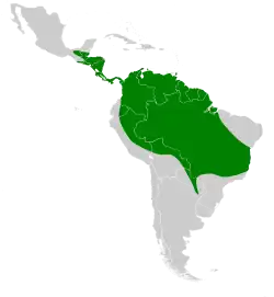 O primeiro espécime de M. macrophyllum foi encontrado no Brasil em 1817 por Wied, proximo ao Rio Mucuri na Bahia e a espécie foi posteriormente descrita por Schinz. Desde então, esses morcegos foram avistados em vários locais da América do Sul, Central e México. Nas regiões do norte da América do Sul, foi encontrado em partes do Peru, Equador, Bolívia e Venezuela. Na América Central, foram vistos na Costa Rica, Honduras, Guatemala e Nicarágua. Também foi localizado em partes do sul do México, como no estado de Tabasco.[3] As localidades mais austrais de ocorrência da espécie são na província de Misiones, na Argentina e no estado do Paraná, Brasil.[4]