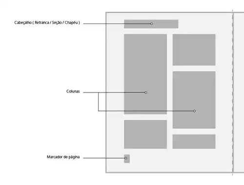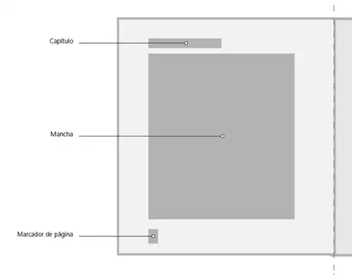 Além da área do conteúdo, existem eixos para alinhamento dos marcadores, como número de página, indicação do capítulo atual e outros.[1]