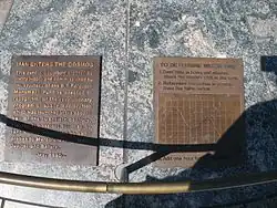 O relógio de sol tem duas placas em sua base. A placa da esquerda é comemorativa e menciona o beneficiário e o propósito da escultura. O beneficiário da escultura foi o fundo do Monumento de Benjamin F. Ferguson, que encomendou várias obras de arte em Chicago. A maioria das obras encomendadas pelo Fundo Ferguson, tal como Fountain of the Great Lakes, estão alojadas no Instituto de Artes de Chicago ou em outros lugares do Grant Park. O objetivo da comissão era reconhecer o programa de exploração espacial. Por sua vez, a placa à direita é uma tabela de equação do tempo que serve para corrigir as diferenças de tempo causadas pela inclinação axial da Terra, assim como a sua excentricidade orbital. Apesar da placa corrigir a precisão do relógio com esta informação adicional, a equação do cronograma não corrige as mudanças causadas pelo horário de verão.[6]