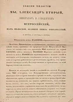 O Manifesto de Emancipação foi o manifesto emitido pelo Czar Alexandre II da Rússia, em 3 de março de 1861, abolindo a servidão no Império Russo.