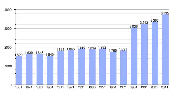 | Variação demográfica do município entre 1861 e 2011[3] |
