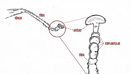 - ↑ Eberhard, Monika J.B.; Pass, Günther; Picker, Mike D.; Beutel, Rolf; Predel, Reinhard; Gorb, Stanislav N. (outubro de 2009). «Structure and function of the arolium of Mantophasmatodea (Insecta)». Journal of Morphology (em inglês). 270 (10): 1247–1261. ISSN 0362-2525. doi:10.1002/jmor.10754. Consultado em 10 de junho de 2018