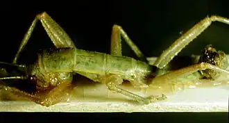 As ninfas desses insetos são menores, mas as proporções do corpo e extremidades não mostram notável diferenças para os adultos. Os espinhos nas extremidades e no corpo não são produzidos nos estágios iniciais de ninfas e aumentam de tamanho a cada muda. No estágio anterior à maturidade, os espinhos são quase produzidos como nos adultos. O tórax é mais trapezoidal entre as ninfas jovens e as quase adultas; a forma hexagonal torna-se distinta nas últimas quatro mudas. Nos machos, a furca do cerco (apêndice unitário ou em par, localizado no final do abdome, normalmente com função sensorial) torna-se visível nas três etapas anteriores à maturidade.
