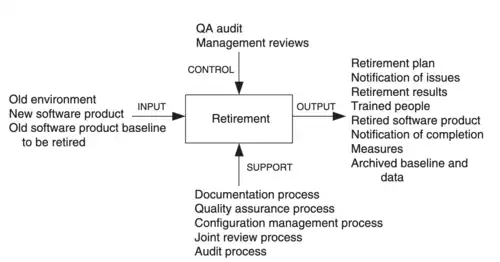 Inicialmente, o software pode passar por um período de aprimoramentos após o lançamento. Novas funcionalidades são adicionadas de acordo com o feedback do usuário. Em algum momento, a empresa pode decidir que não é mais rentável fazer melhorias funcionais e restringir o suporte à correção de bugs e atualizações de emergência. As alterações tornam-se cada vez mais difíceis e caras devido à falta de expertise ou à arquitetura decadente devido ao envelhecimento de software. Depois que um produto não é mais mantido e não recebe nem mesmo esse nível limitado de atualização, alguns fornecedores buscarão extrair receita do software enquanto for possível, mesmo que o produto provavelmente seja cada vez mais evitado. Eventualmente, o software será retirado do mercado, embora possa permanecer em uso. Durante esse processo, o software se torna um sistema legado.[12]