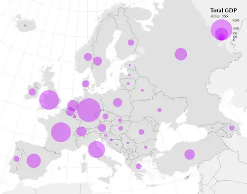 Um mapa de símbolos proporcionais ou mapa de símbolos pontuais proporcionais é um tipo de mapa temático que utiliza símbolos que variam em tamanho para representar uma variável quantitativa. [1] (p131) Por exemplo, círculos podem ser usados para mostrar a localização das cidades no mapa, com o tamanho de cada círculo proporcional à população da cidade. Tipicamente, o tamanho de cada símbolo é calculado para que sua área seja matematicamente proporcional à variável, mas métodos mais indiretos (por exemplo, categorizando símbolos como "pequeno", "médio" e "grande") também são utilizados.