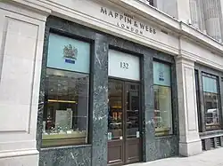 Uma filial da Mappin & Webb ocupou um local na cidade de Londres na junção da Poultry e Queen Victoria Street, adjacente ao entroncamento do Banco, na cidade de Londres. Projetado no estilo neo-gótico por John Belcher em 1870, o prédio listado foi demolido em 1994 para abrir caminho para a construção de um escritório pós-moderno e um edifício de varejo - No 1 Poultry - apesar de uma campanha ferozmente disputada para salvar o prédio do século XIX.