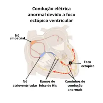Um foco ectópico pode ser causado em corações previamente saudáveis pela automaticidade das células marca-passo ou atividade desencadeada, como: