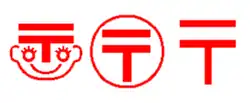 〒 (郵便マーク, Yūbin māku) é o símbolo usado pelo Japan Post, que antes consistia no Hinomaru com uma barra horizontal vermelha no centro da bandeira. Também tinha um fino anel branco em volta do sol vermelho. Foi depois substituído por uma bandeira que consiste no 〒 em vermelho com um fundo branco.[1] Após a privatização do Japan Post, em 2007, o símbolo continuou a ser usado,[2] e hoje o símbolo 〒 é usado no Japão para representar o correio convencional. Ele aparece em caixas de correio, edifícios dos correios, e publicações dos correios.[3]