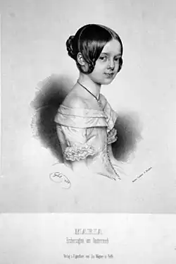 Maria Henriqueta era a última filha do arquiduque José Antônio João da Áustria, filho do imperador Leopoldo II, e de sua terceira esposa, Maria Doroteia de Württemberg. Antes de se casar com Maria, o seu pai tinha tido como esposa a grã-duquesa Alexandra Pavlovna da Rússia e depois a princesa Hermínia de Anhalt-Bernburg-Schaumburg-Hoym. Ambas morreram jovens ao dar à luz. Maria Henriqueta tinha três meios-irmãos fruto dos primeiros casamentos do pai: a arquiduquesa Alexandrina da Áustria, filha da grã-duquesa Alexandra, que viveu apenas um dia, e os gémeos Hermínia e Estêvão, filhos da princesa Hermínia.