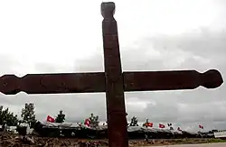 Em resposta a vandalização do primeiro monumento, em setembro de 1997, as lideranças do Movimento dos Trabalhadores Rurais Sem Terra do sul do Pará resolveram convidar o dramaturgo galês-brasileiro Dan Baron Cohen (conhecido como Dan Baron) para pensar num novo monumento a ser erguido em Eldorado, no local do massacre.[5] Em 17 de abril de 1999 cerca de oitocentos sobreviventes ergueram, sob a coordenação de Baron, um monumento. O trabalho foi denominado de "As Castanheiras de Eldorado do Carajás", mais conhecido como Monumento das Castanheiras Mortas.[6]