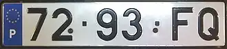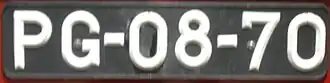 - Placas brancas com caracteres a vermelho, sem "eurobanda" com as sequências 000-xx000: reservadas a diplomatas e a funcionários em missões internacionais. (CD: Corpo Diplomático, CC: Corpo Consular e FM: Funcionário em Missão (Internacional)) e o primeiro grupo de algarismos identifica o país ou a organização internacional (ex: Comissão Europeia, NATO) a que pertence (ex.: 018: Bélgica, 060: França, 095: Luxemburgo, 115: Noruega, 118: Países Baixos, 200: Comissão Europeia, etc.);
