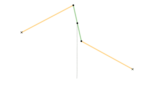 As convexidades dos arcos, dispostas em direções opostas, têm um certo ponto na alavanca de conexão que tem pouquíssima variação de uma linha reta.