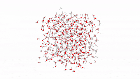 Simulação de uma amostra de água por meio da dinâmica molecular.