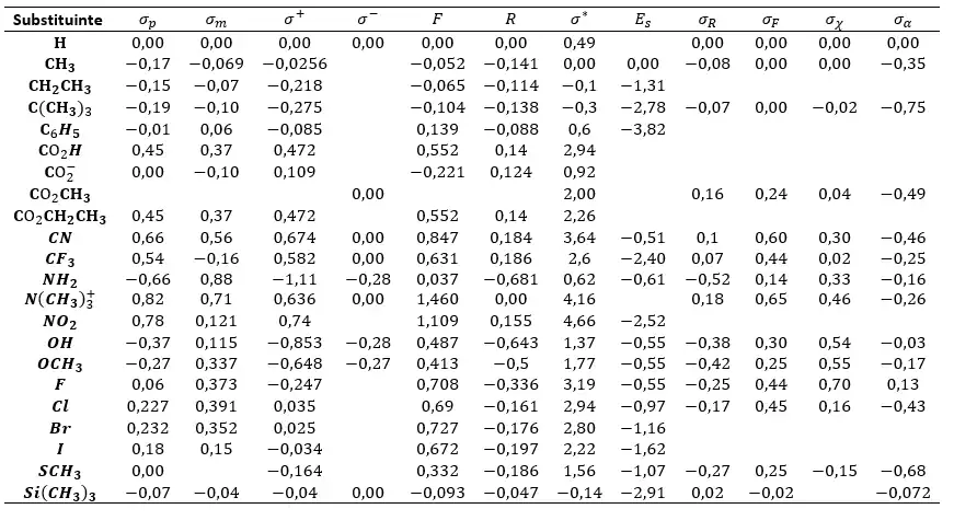 46. Taft, R. W., & Lewis, I. C. «The General Applicability of a Fixed Scale of Inductive Effects. II. Inductive Effects of Dipolar Substituents in the Reactivities of m- and p-Substituted Derivatives of Benzene». Journal of the American Chemical Society, 80(10): 2436–2443. doi:10.1021/ja01543a023