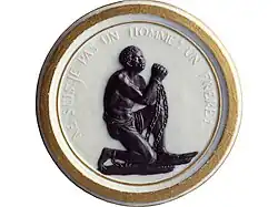 O Medalhão de Wedgwood é o primeiro medalhão contra escravidão.[1] Um símbolo abolicionista produzido e distribuído por William Hackwood e Josiah Wedgwood em 1787 como parte da propaganda contra escravidão do grupo de filósofos, designers e arquitetos, do Comitê para a abolição do tráfico negreiro, que tinha como fundador Thomas Clarkson[2]. O medalhão utiliza a imagem de um homem negro, de joelhos acorrentado com suas mãos para o céu; enquanto ao seu redor está escrita a frase "Eu não sou um homem ou um irmão?".