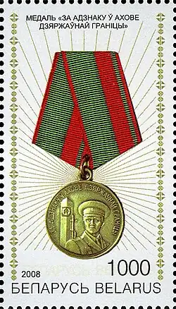 A Medalha “Por Distinção na Guarda da Fronteira Estatal” (em bielorrusso: Медаль «За адзнаку ў ахове дзяржаўнай граніцы»; romaniz.: Medalʹ "Za adznaku ŭ akhove dziaržaŭnaj hranicy"), com aparência semelhante à condecoração russa, também integra o sistema de premiações da Bielorrússia. Foi instituída em 13 de abril de 1995 pela Lei da República da Bielorrússia nº 3726-XII “Sobre as condecorações estatais da República da Bielorrússia”.[13]