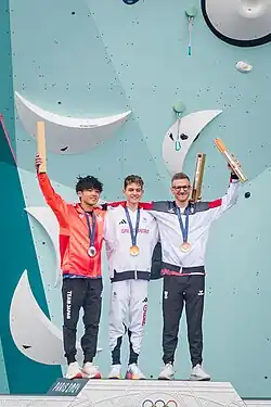 - ↑ a b c d e «Sport Climbing – Medallists by Event» (PDF) (em inglês). Olympics.com. Consultado em 13 de setembro de 2024. Cópia arquivada (PDF) em 17 de agosto de 2024