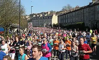 Corredores disputam uma meia-maratona em Bath, na Inglaterra.