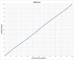 - Nos últimos 5 milhões de anos, a inclinação axial da Terra variou entre 22.042500° e 24.50444°. O efeito na longitude do meio do céu é menos que 0,5295°.[2][8]