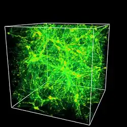 Simulação de computador mostrando a distribuição de gás intergaláctico morno-quente