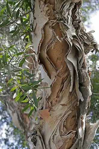 Melaleuca quinquenervia, é uma árvore de pequeno a médio porte da família Myrtaceae. Cresce como uma árvore que se espalha até 20 metros de altura, com seu tronco coberto por uma casca grossa de papel branco, bege e cinza. As folhas verde-acinzentadas são em forma de ovo, e as flores em forma de escova de garrafa creme ou branca aparecem do final da primavera ao outono. Foi descrita formalmente pela primeira vez em 1797 pelo naturalista espanhol Antonio José Cavanilles.