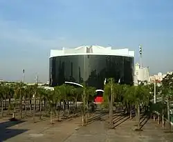 O auditório é o maior e mais complexo edifício do conjunto. É dotado de duas plateias com 1 600 poltronas, dedicadas a apresentações artísticas e a realização de congressos e convenções. Seus espaços principais (foyer, plateias e palco) são criados por meio do arranjo de três abóbodas sucessivas, duas das quais apoiadas em uma grande viga de concreto. Sob a sequência de abóbodas encontra-se abrigado o caixilho de vidro. Nas laterais do edifício, dois volumes paralelepípedos neutros, semienterrados e visualmente isolados, servem como anexos, sediando áreas de apoio para artistas e congressistas.[21][49]