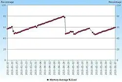 O padrão "dente de serra" de utilização de memória: a queda repentina no uso de memória é uma candidata a sintoma de vazamento de memória.
