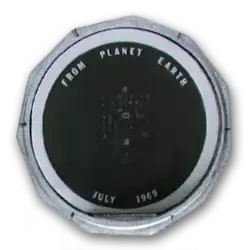 No topo do disco está a inscrição: "Mensagens de boa vontade de ao redor do mundo trazidas à Lua pelos astronautas da Apollo 11." Ao redor do aro está a declaração: "Do Planeta Terra -- Julho de 1969". O disco foi produzido pela Empresa Sprague Electric de North Adams (Massachusetts). O diretor da NASA Thomas O. Paine propôs a ideia ao Departamento de Estado norte-americano e correspondeu-se com líderes mundiais para pedir suas mensagens. Estas foram consagradas por serem fotografadas e reduzidas à escala 1/200 para gravação em silício ultra microfiche. O disco está num estojo de alumínio no Mare Tranquillitatis.[1]